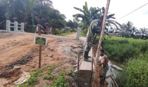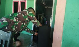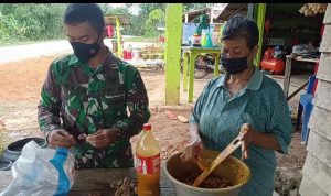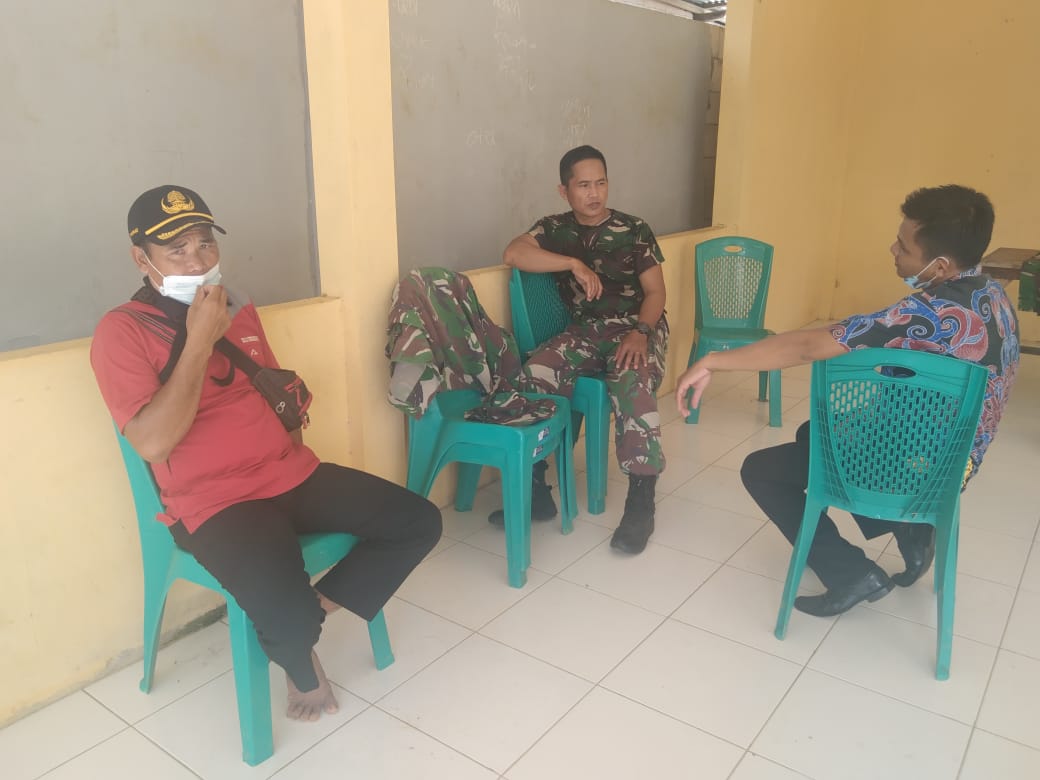 Bengkayang – Anggota TMMD 111/ Kodim 1202/Skw Serda Samuel Slamet, melaksanakan Komunikasi Sosial (komsos) dengan perangkat Desa Sentangau Jaya, Kecamatan Seluas, Kabupaten Bengkayang, Selasa (15/6/2021).
