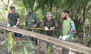Bengkayang – Anggota TMMD 111/ Kodim 1202/Skw Serda Samuel Slamet, melaksanakan Komunikasi Sosial (komsos) dengan perangkat Desa Sentangau Jaya, Kecamatan Seluas, Kabupaten Bengkayang, Selasa (15/6/2021).