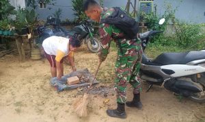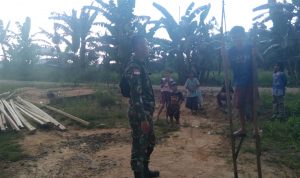 Bengkayang – Anggota TMMD 111/ Kodim 1202/Skw Serda Samuel Slamet, melaksanakan Komunikasi Sosial (komsos) dengan perangkat Desa Sentangau Jaya, Kecamatan Seluas, Kabupaten Bengkayang, Selasa (15/6/2021).