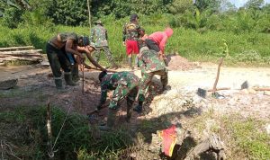 Bengkayang – Anggota TMMD 111/ Kodim 1202/Skw Serda Samuel Slamet, melaksanakan Komunikasi Sosial (komsos) dengan perangkat Desa Sentangau Jaya, Kecamatan Seluas, Kabupaten Bengkayang, Selasa (15/6/2021).
