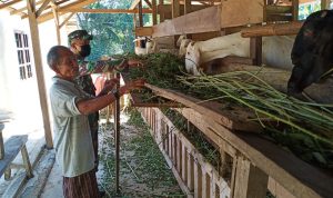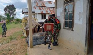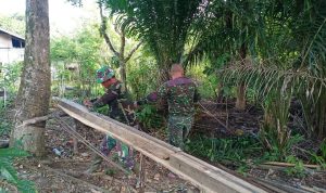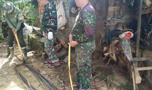 Bengkayang – Anggota TMMD 111/ Kodim 1202/Skw Serda Samuel Slamet, melaksanakan Komunikasi Sosial (komsos) dengan perangkat Desa Sentangau Jaya, Kecamatan Seluas, Kabupaten Bengkayang, Selasa (15/6/2021).