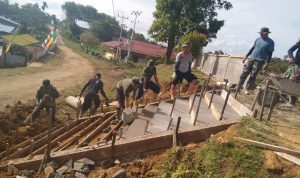 Bengkayang – Anggota TMMD 111/ Kodim 1202/Skw Serda Samuel Slamet, melaksanakan Komunikasi Sosial (komsos) dengan perangkat Desa Sentangau Jaya, Kecamatan Seluas, Kabupaten Bengkayang, Selasa (15/6/2021).