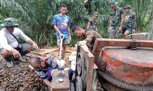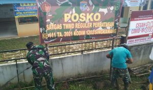Bengkayang – Anggota TMMD 111/ Kodim 1202/Skw Serda Samuel Slamet, melaksanakan Komunikasi Sosial (komsos) dengan perangkat Desa Sentangau Jaya, Kecamatan Seluas, Kabupaten Bengkayang, Selasa (15/6/2021).