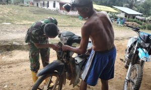 Bengkayang – Anggota TMMD 111/ Kodim 1202/Skw Serda Samuel Slamet, melaksanakan Komunikasi Sosial (komsos) dengan perangkat Desa Sentangau Jaya, Kecamatan Seluas, Kabupaten Bengkayang, Selasa (15/6/2021).