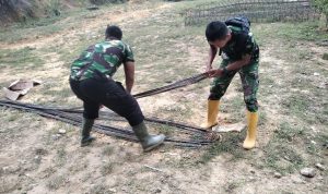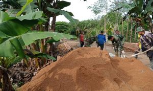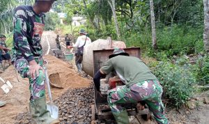 Bengkayang – Anggota TMMD 111/ Kodim 1202/Skw Serda Samuel Slamet, melaksanakan Komunikasi Sosial (komsos) dengan perangkat Desa Sentangau Jaya, Kecamatan Seluas, Kabupaten Bengkayang, Selasa (15/6/2021).
