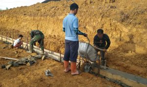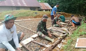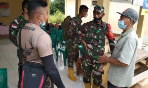 Bengkayang – Anggota TMMD 111/ Kodim 1202/Skw Serda Samuel Slamet, melaksanakan Komunikasi Sosial (komsos) dengan perangkat Desa Sentangau Jaya, Kecamatan Seluas, Kabupaten Bengkayang, Selasa (15/6/2021).