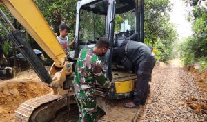 Bengkayang – Anggota TMMD 111/ Kodim 1202/Skw Serda Samuel Slamet, melaksanakan Komunikasi Sosial (komsos) dengan perangkat Desa Sentangau Jaya, Kecamatan Seluas, Kabupaten Bengkayang, Selasa (15/6/2021).