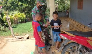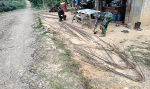 Bengkayang – Anggota TMMD 111/ Kodim 1202/Skw Serda Samuel Slamet, melaksanakan Komunikasi Sosial (komsos) dengan perangkat Desa Sentangau Jaya, Kecamatan Seluas, Kabupaten Bengkayang, Selasa (15/6/2021).