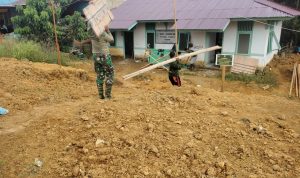 Bengkayang – Anggota TMMD 111/ Kodim 1202/Skw Serda Samuel Slamet, melaksanakan Komunikasi Sosial (komsos) dengan perangkat Desa Sentangau Jaya, Kecamatan Seluas, Kabupaten Bengkayang, Selasa (15/6/2021).