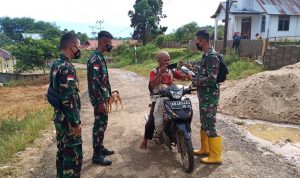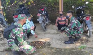 Bengkayang – Anggota TMMD 111/ Kodim 1202/Skw Serda Samuel Slamet, melaksanakan Komunikasi Sosial (komsos) dengan perangkat Desa Sentangau Jaya, Kecamatan Seluas, Kabupaten Bengkayang, Selasa (15/6/2021).