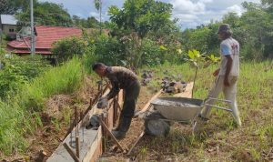 Bengkayang – Anggota TMMD 111/ Kodim 1202/Skw Serda Samuel Slamet, melaksanakan Komunikasi Sosial (komsos) dengan perangkat Desa Sentangau Jaya, Kecamatan Seluas, Kabupaten Bengkayang, Selasa (15/6/2021).