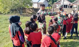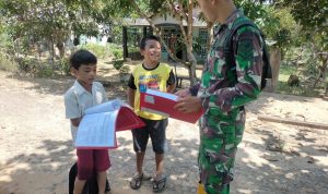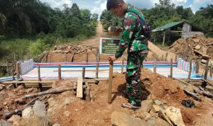 Bengkayang – Anggota TMMD 111/ Kodim 1202/Skw Serda Samuel Slamet, melaksanakan Komunikasi Sosial (komsos) dengan perangkat Desa Sentangau Jaya, Kecamatan Seluas, Kabupaten Bengkayang, Selasa (15/6/2021).