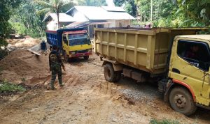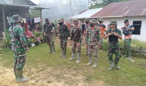 Bengkayang – Anggota TMMD 111/ Kodim 1202/Skw Serda Samuel Slamet, melaksanakan Komunikasi Sosial (komsos) dengan perangkat Desa Sentangau Jaya, Kecamatan Seluas, Kabupaten Bengkayang, Selasa (15/6/2021).