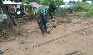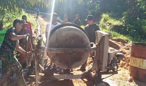 Bengkayang – Anggota TMMD 111/ Kodim 1202/Skw Serda Samuel Slamet, melaksanakan Komunikasi Sosial (komsos) dengan perangkat Desa Sentangau Jaya, Kecamatan Seluas, Kabupaten Bengkayang, Selasa (15/6/2021).