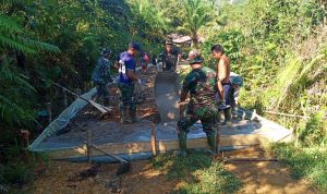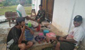 Bengkayang – Anggota TMMD 111/ Kodim 1202/Skw Serda Samuel Slamet, melaksanakan Komunikasi Sosial (komsos) dengan perangkat Desa Sentangau Jaya, Kecamatan Seluas, Kabupaten Bengkayang, Selasa (15/6/2021).