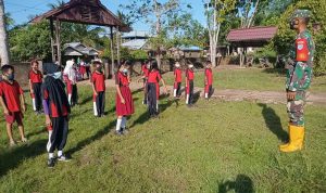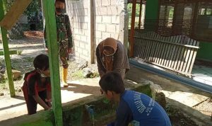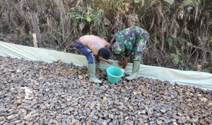 Bengkayang – Anggota TMMD 111/ Kodim 1202/Skw Serda Samuel Slamet, melaksanakan Komunikasi Sosial (komsos) dengan perangkat Desa Sentangau Jaya, Kecamatan Seluas, Kabupaten Bengkayang, Selasa (15/6/2021).