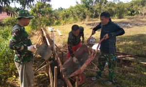 Bengkayang – Anggota TMMD 111/ Kodim 1202/Skw Serda Samuel Slamet, melaksanakan Komunikasi Sosial (komsos) dengan perangkat Desa Sentangau Jaya, Kecamatan Seluas, Kabupaten Bengkayang, Selasa (15/6/2021).