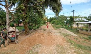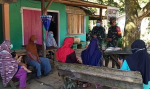 Bengkayang – Anggota TMMD 111/ Kodim 1202/Skw Serda Samuel Slamet, melaksanakan Komunikasi Sosial (komsos) dengan perangkat Desa Sentangau Jaya, Kecamatan Seluas, Kabupaten Bengkayang, Selasa (15/6/2021).