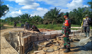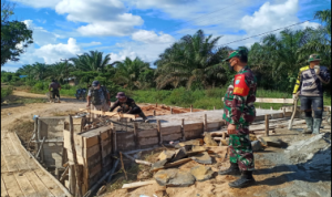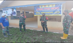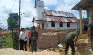 Bengkayang – Anggota TMMD 111/ Kodim 1202/Skw Serda Samuel Slamet, melaksanakan Komunikasi Sosial (komsos) dengan perangkat Desa Sentangau Jaya, Kecamatan Seluas, Kabupaten Bengkayang, Selasa (15/6/2021).