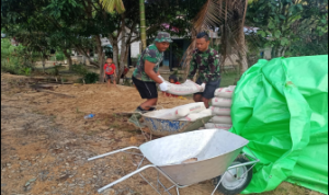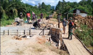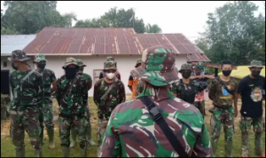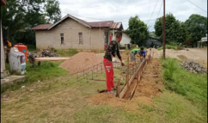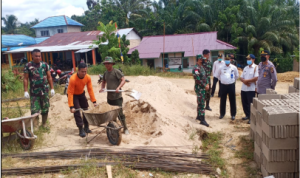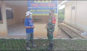 Bengkayang – Anggota TMMD 111/ Kodim 1202/Skw Serda Samuel Slamet, melaksanakan Komunikasi Sosial (komsos) dengan perangkat Desa Sentangau Jaya, Kecamatan Seluas, Kabupaten Bengkayang, Selasa (15/6/2021).