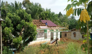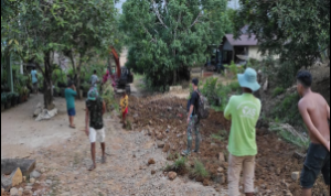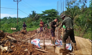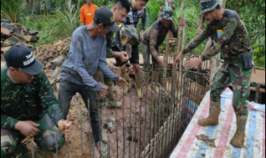 Bengkayang – Anggota TMMD 111/ Kodim 1202/Skw Serda Samuel Slamet, melaksanakan Komunikasi Sosial (komsos) dengan perangkat Desa Sentangau Jaya, Kecamatan Seluas, Kabupaten Bengkayang, Selasa (15/6/2021).