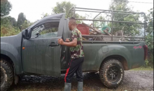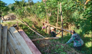 Bengkayang – Anggota TMMD 111/ Kodim 1202/Skw Serda Samuel Slamet, melaksanakan Komunikasi Sosial (komsos) dengan perangkat Desa Sentangau Jaya, Kecamatan Seluas, Kabupaten Bengkayang, Selasa (15/6/2021).