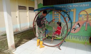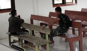 Bengkayang – Anggota TMMD 111/ Kodim 1202/Skw Serda Samuel Slamet, melaksanakan Komunikasi Sosial (komsos) dengan perangkat Desa Sentangau Jaya, Kecamatan Seluas, Kabupaten Bengkayang, Selasa (15/6/2021).