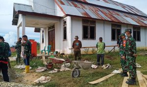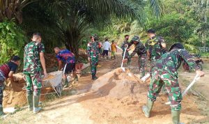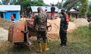 Bengkayang – Anggota TMMD 111/ Kodim 1202/Skw Serda Samuel Slamet, melaksanakan Komunikasi Sosial (komsos) dengan perangkat Desa Sentangau Jaya, Kecamatan Seluas, Kabupaten Bengkayang, Selasa (15/6/2021).