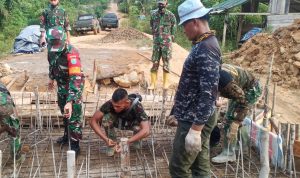Satgas TMMD ke-111 Kodim 1202/Skw Komsos dengan Aparatur Desa Sentangau Jaya