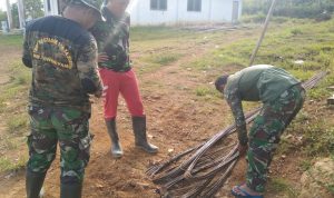 Bengkayang – Anggota TMMD 111/ Kodim 1202/Skw Serda Samuel Slamet, melaksanakan Komunikasi Sosial (komsos) dengan perangkat Desa Sentangau Jaya, Kecamatan Seluas, Kabupaten Bengkayang, Selasa (15/6/2021).