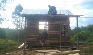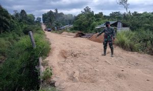 Bengkayang – Anggota TMMD 111/ Kodim 1202/Skw Serda Samuel Slamet, melaksanakan Komunikasi Sosial (komsos) dengan perangkat Desa Sentangau Jaya, Kecamatan Seluas, Kabupaten Bengkayang, Selasa (15/6/2021).