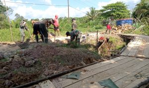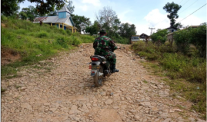 Bengkayang – Anggota TMMD 111/ Kodim 1202/Skw Serda Samuel Slamet, melaksanakan Komunikasi Sosial (komsos) dengan perangkat Desa Sentangau Jaya, Kecamatan Seluas, Kabupaten Bengkayang, Selasa (15/6/2021).