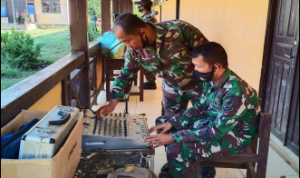 Bengkayang – Anggota TMMD 111/ Kodim 1202/Skw Serda Samuel Slamet, melaksanakan Komunikasi Sosial (komsos) dengan perangkat Desa Sentangau Jaya, Kecamatan Seluas, Kabupaten Bengkayang, Selasa (15/6/2021).