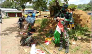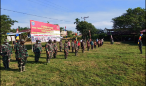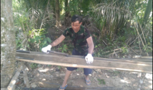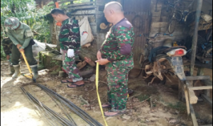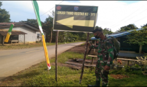 Bengkayang – Anggota TMMD 111/ Kodim 1202/Skw Serda Samuel Slamet, melaksanakan Komunikasi Sosial (komsos) dengan perangkat Desa Sentangau Jaya, Kecamatan Seluas, Kabupaten Bengkayang, Selasa (15/6/2021).