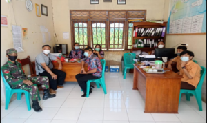 Bengkayang – Anggota TMMD 111/ Kodim 1202/Skw Serda Samuel Slamet, melaksanakan Komunikasi Sosial (komsos) dengan perangkat Desa Sentangau Jaya, Kecamatan Seluas, Kabupaten Bengkayang, Selasa (15/6/2021).