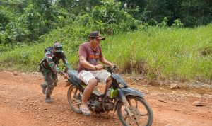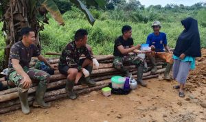 Bengkayang – Anggota TMMD 111/ Kodim 1202/Skw Serda Samuel Slamet, melaksanakan Komunikasi Sosial (komsos) dengan perangkat Desa Sentangau Jaya, Kecamatan Seluas, Kabupaten Bengkayang, Selasa (15/6/2021).