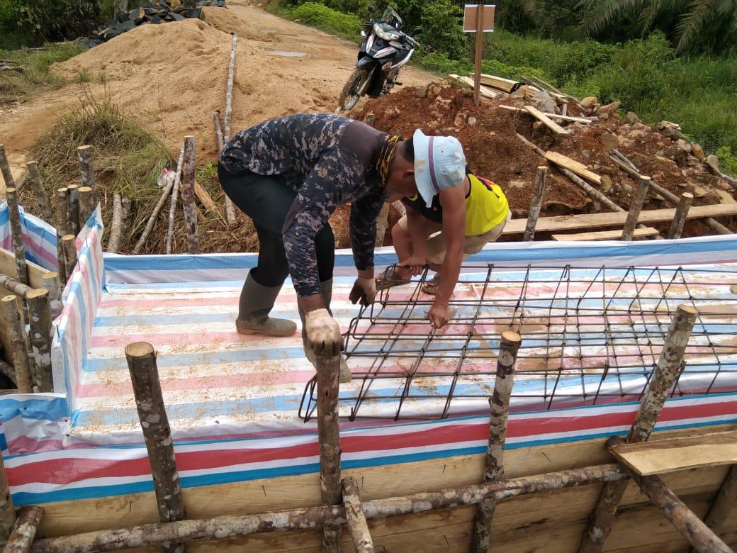 Bengkayang – Anggota Satgas TMMD ke-111 Kodim 1202/Skw memulai merangkai kawat besi guna kerangka jembatan di Dusun Trimulya Desa Sentangau Jaya Jalan Trans Segorong Kecamatan Seluas Kabupaten Bengkayang Provinsi Kalimantan Barat.