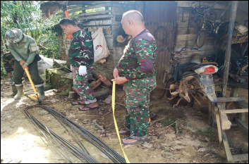 Bengkayang – Prajurit Satgas TMMD ke-111 Kodim 1202/Skw memulai merangkai kawat besi guna kerangka jembatan di Dusun Trimulya Desa Sentangau Jaya Jalan Trans