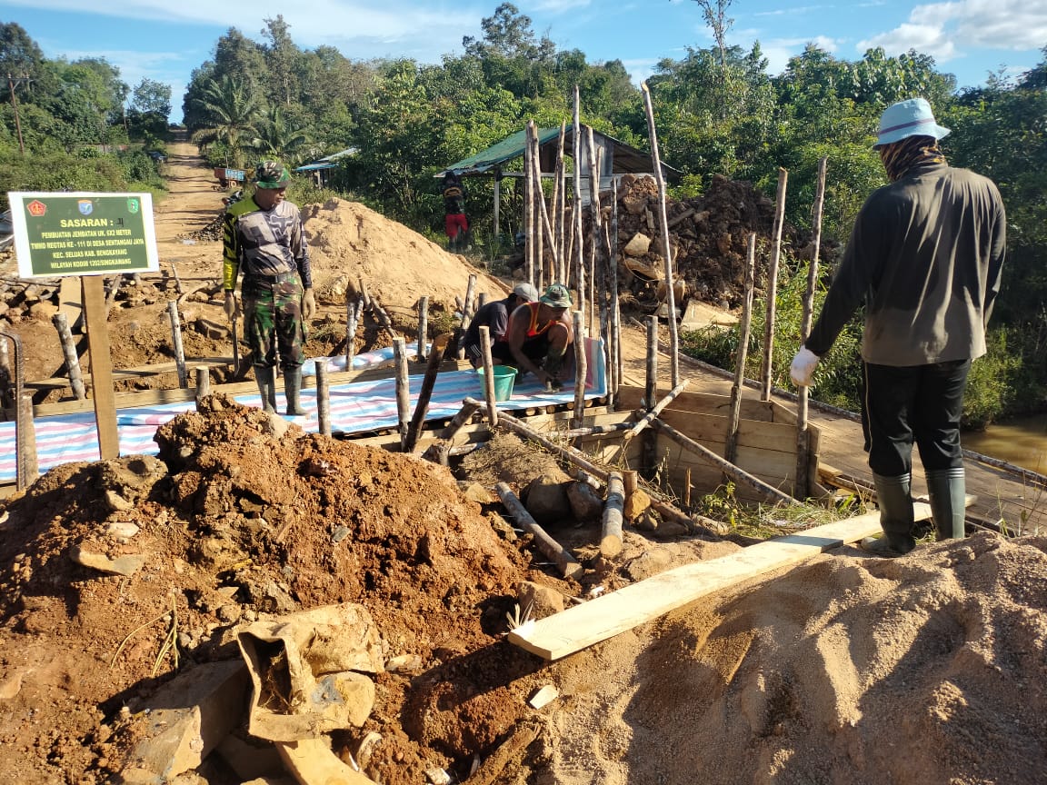 Bengkayang – Satuan Tugas TNI Manunggal Membangun Desa TMMD ke-111 Kodim 1202/Singkawang berupaya semaksimal mungkin untuk merampungkan pengerjaan jembatan penunjang jalan penghubung di Desa Sentangau Jaya, Kecamatan Seluas, Kabupaten Bengkayang, Kalimantan Barat.