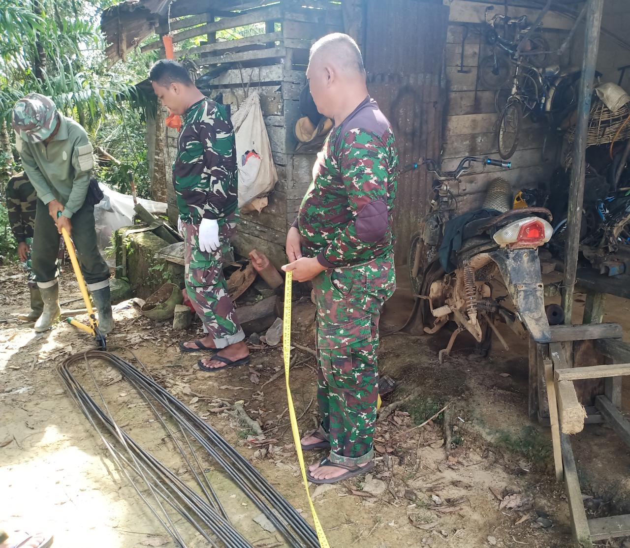 Pjs Danramil 04/Sls Serma Hamdani mengatakan, saat ini anggotanya sedang melakukan pemotongan besi yang nantinya akan digunakan sebagai bahan konstruksi bangunan.