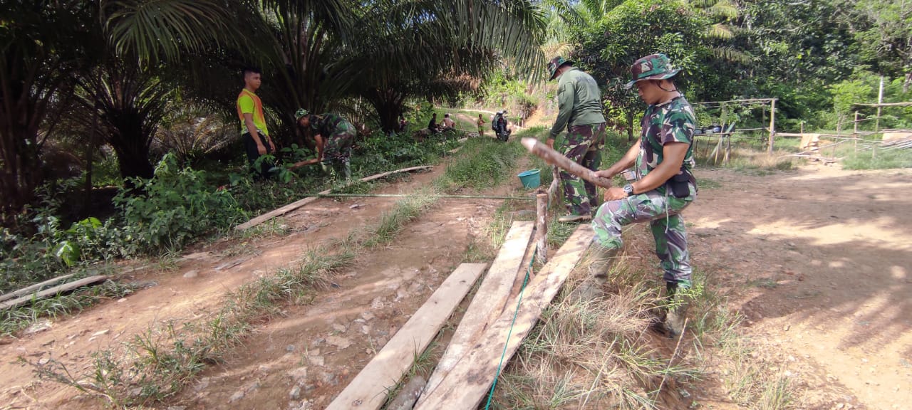 Pjs Danramil 1202-04/Seluas Serma Hamdani mengatakan, selain membuat patok untuk pembatas jalan yang akan dibangun.
