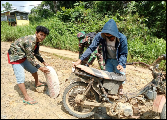 Hal itu terlihat saat Serda Stefelik Endri, anggota Kodim 1202/Skw yang membantu memperbaiki sepeda motor warga yang sedang mogok di jalan. Beruntung