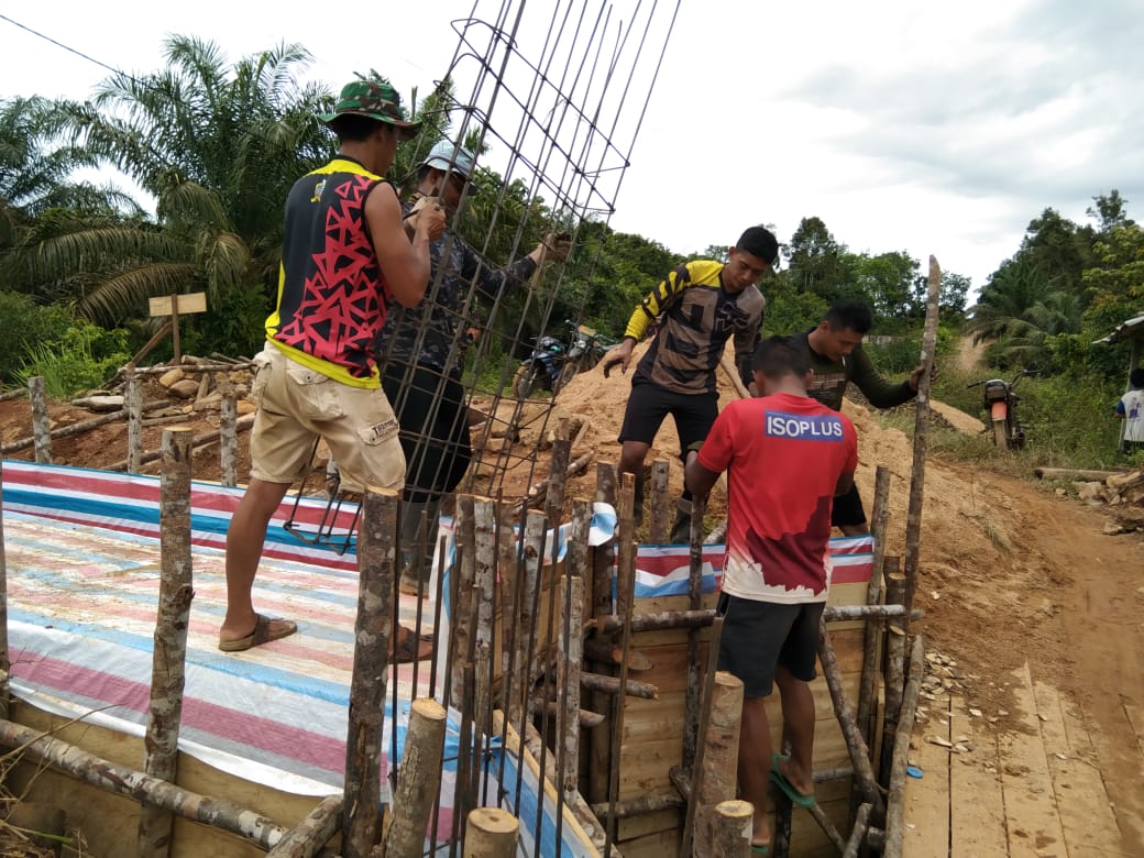Bengkayang – Satgas Tentara Manunggal Membangun Desa (TMMD) ke-111 Kodim 1202/Singkawang, di Desa Sentangau Jaya, Kecamatan Seluas, Kabupaten Bengkayang, bersama warga mulai memasang rangkaian besi untuk pengecoran jembatan.