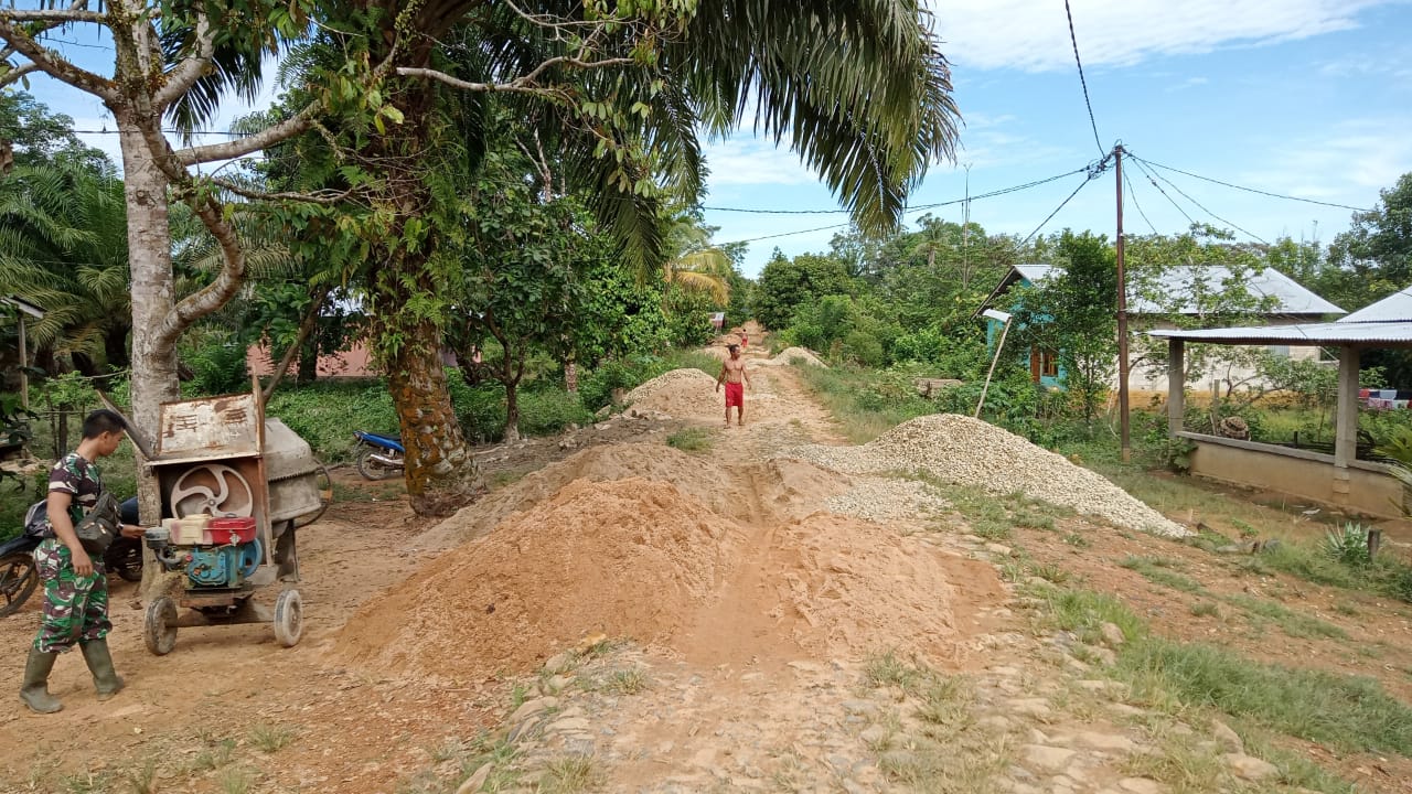 Bengkayang – Guna mensukseskan kegiatan TMMD Reguler ke 111 Kodim 1202/Skw gunakan mesin molen beton untuk percepat pengecoran jalan di Desa Sentangau Jaya.