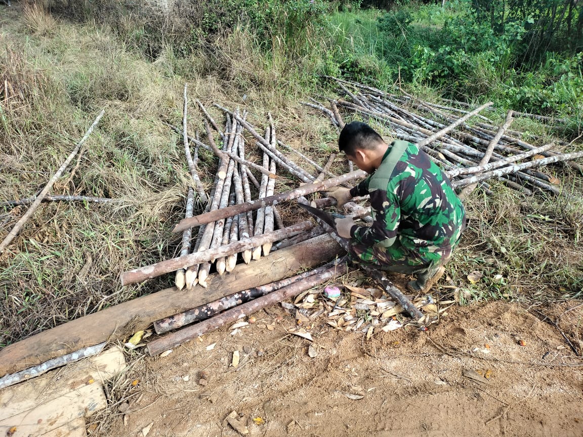 Siapkan Bahan Kayu untuk Pembangunan Jembatan, Satgas TMMD Bersama Warga Lakukan Giat Kerja Bakti