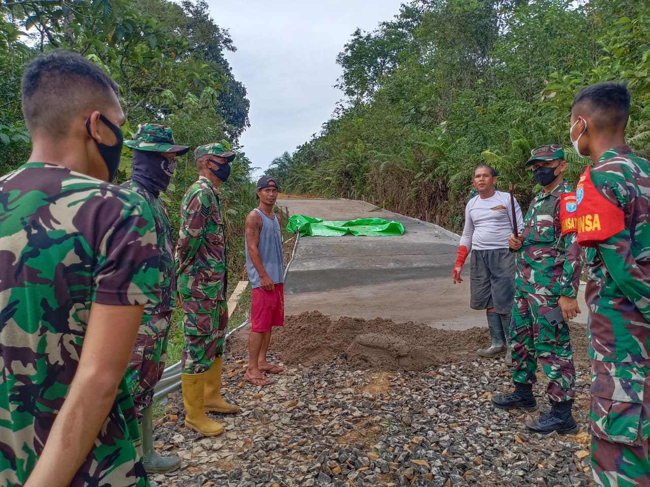 Letkol Inf Condro Edi Wibowo S.Sos., M.Han, siang ini meninjau sasaran fisik pengecoran jalan sepanjang 4 x 280 meter di Dusun Trimulya Desa Sentangau Jaya Jalan Trans Segorong Kecamatan Seluas Kabupaten Bengkayang.