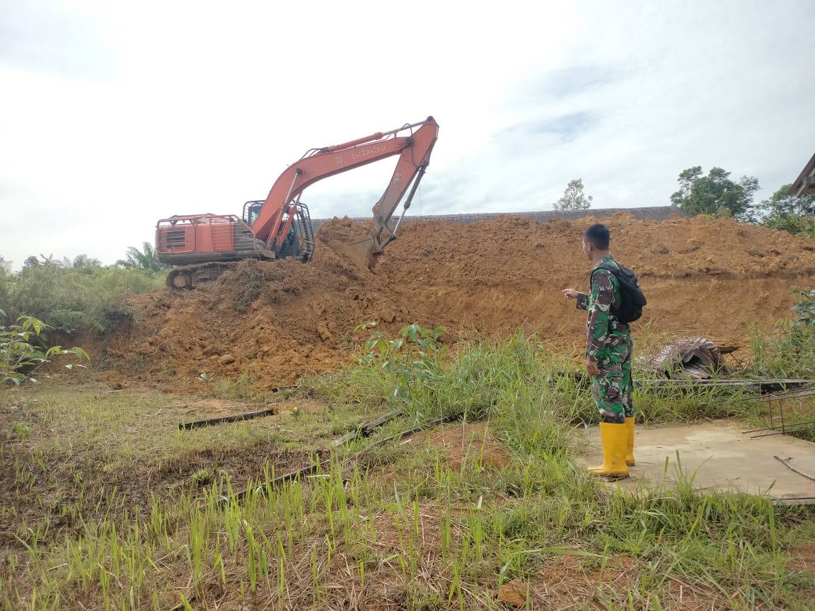Bengkayang – anggota Satgas TMMD terus memantau pelaksanaan perataan tanah untuk pembuatan pagar gereja nanti nya di desa setangau jaya kec. seluas kab. bengkayang.