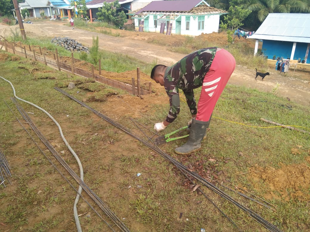 Bengkayang– Satgas Tentara Manunggal Membangun Desa (TMMD) Ke-111 Kodim 1202/Singkawang, di Desa Sentangau Jaya, Kecamatan Seluas, Kabupaten Bengkayang mulai memasang rangkaian besi untuk pengecoran pagar gereja.