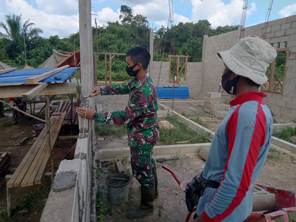 Bengkayang – Personel Satuan Tugas (Satgas) TNI Manunggal Membangun Desa (TMMD) ke- 111 Kodim 1202/Skw bersama bergotong royong membangun rumah warga, Rabu (16/03/2021).