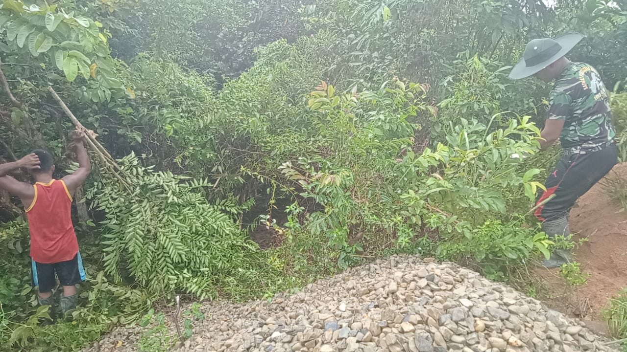 Bengkayang – Warga Desa Sentangau Jaya dengan penuh semangat membersihkan lahan sebagai lokasi pembangunan sasaran TMMD.